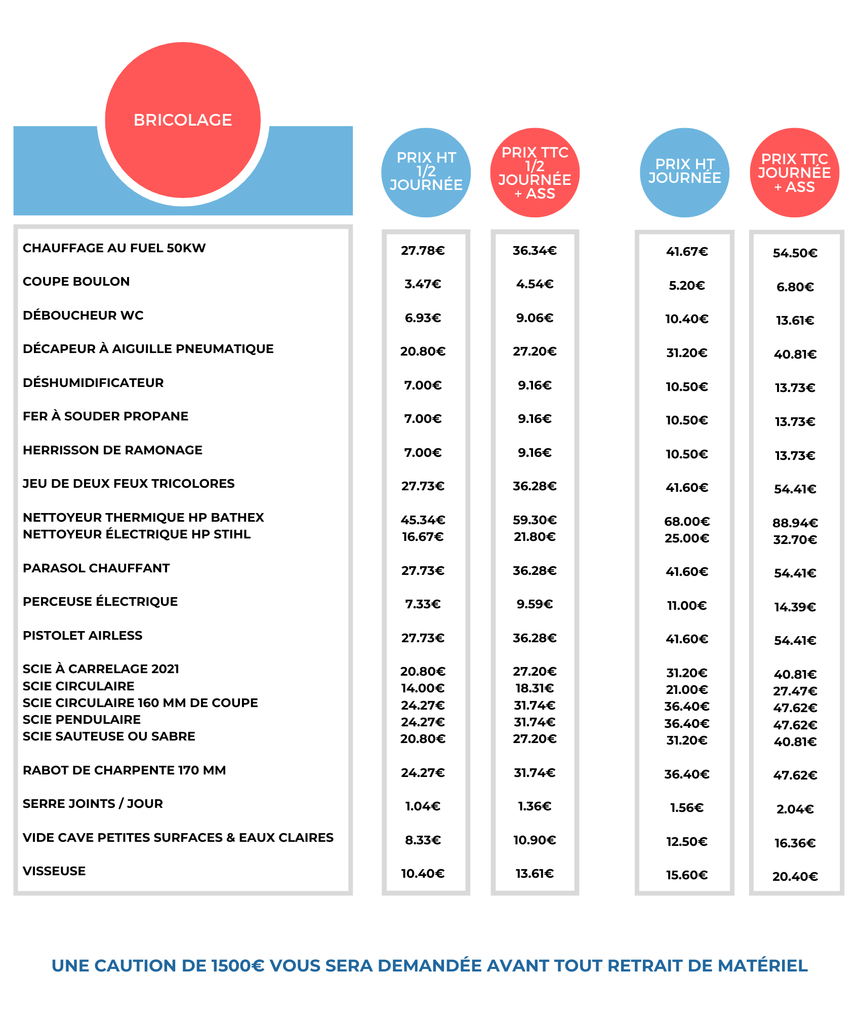 TARIFS DEMI-JOURNÉE & JOURNÉE