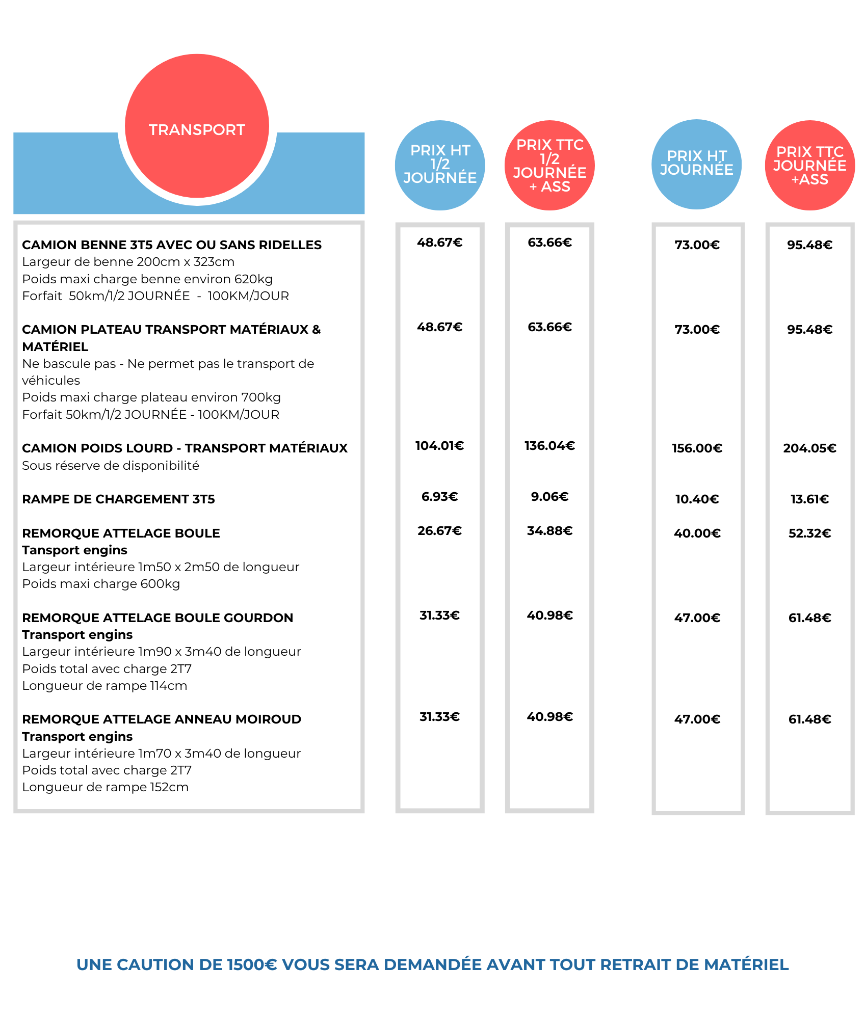 TARIFS DEMI-JOURNÉE & JOURNÉE